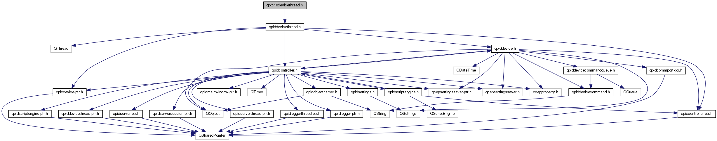 Include dependency graph for qptc10devicethread.h: